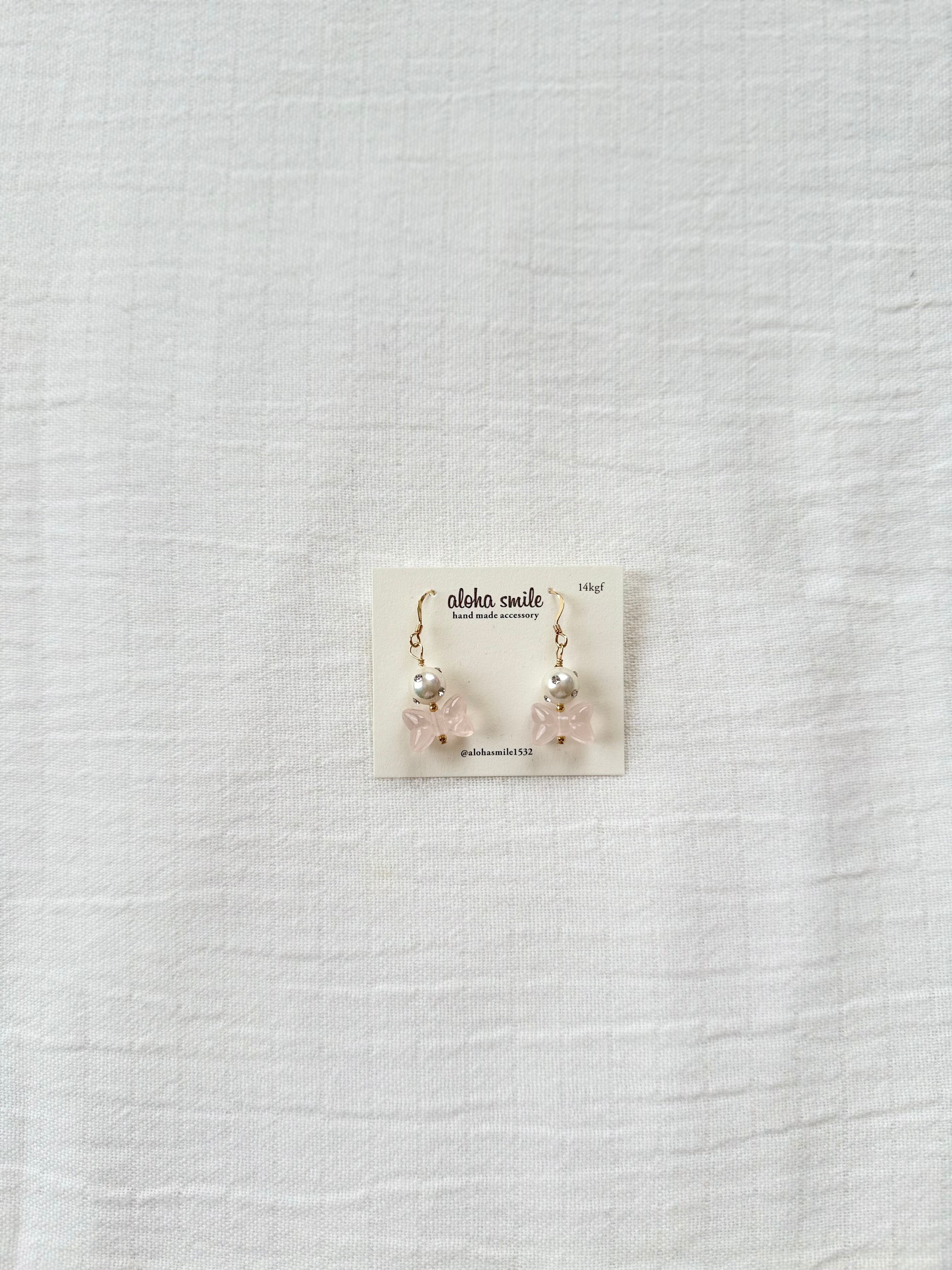 14kgf ピアス リボン✖️フェイクパール